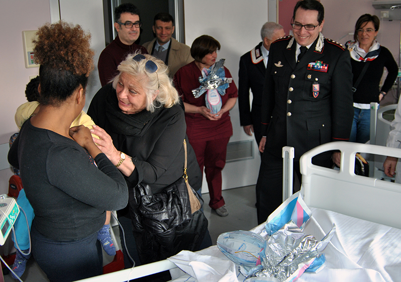 SIENA. Una mattinata speciale nel Dipartimento Materno Infantile e nella Neuropsichiatria Infantile del policlinico Santa Maria alle Scotte, grazie alla visita dell’Arma dei Carabinieri e dell’Associazione Nazionale Carabinieri che hanno portato uova di Pasqua, regali e sorrisi ai piccoli pazienti e alle rispettive famiglie, insieme ad un reciproco scambio di auguri con i professionisti dell’Azienda ospedaliero-universitaria Senese. Presente all’evento il comandante provinciale dell’Arma dei Carabinieri, colonnello Stefano di Pace e il presidente dell’Associazione Nazionale Carabinieri, sezione di Castellina e Radda in Chianti, vice brigadiere in congedo Beniamino De Gaetano. Ha partecipato inoltre Paolo Brigliadoro, dell’Associazione Italiana per la Lotta al Neuroblastoma, nata presso l’Ospedale pediatrico Gaslini di Genova a sostegno soprattutto di neonati e bambini al di sotto dei 10 anni che vengono colpiti da questo tumore che ha origine dalle cellule del sistema nervoso autonomo. Le uova regalate sono state acquistate dai Carabinieri e dall’Associazione Nazionale Carabinieri di Castellina e Radda in Chianti proprio dall’Associazione Italiana per la Lotta al Neuroblastoma. A fare gli onori di casa il direttore sanitario dell’Azienda ospedaliero-universitaria Senese, Roberto Gusinu, insieme al direttore del Dipartimento Materno-Infantile, professor Mario Messina, e a tutti i professionisti del Dipartimento e della Neuropsichiatria Infantile.