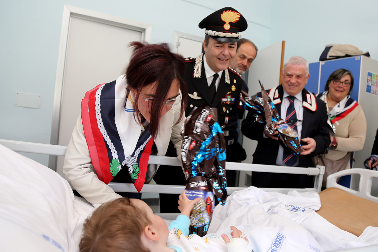 Visita al Dipartimento Materno-Infantile e alla Neuropsichiatria Infantile con uova di cioccolato e regali per i bambini ricoverati