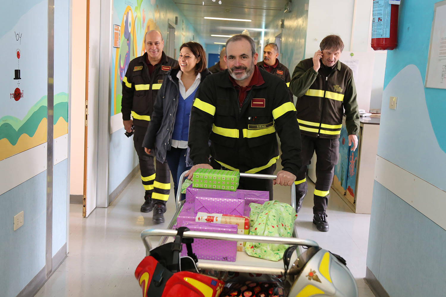 SIENA. La Befana dei Vigili del Fuoco di Siena ha fatto visita ai piccoli pazienti del Dipartimento Materno-Infantile del policlinico Santa Maria alle Scotte. Entusiasmo, regali e allegria hanno reso speciale la giornata ospedaliera dei bambini ricoverati. Si concludono così le iniziative natalizie presso l’AOU Senese, con un sentito ringraziamento a tutte le associazioni, enti, istituzioni e aziende che hanno contribuito a rendere gioiosa la degenza dei piccoli pazienti in questo periodo.