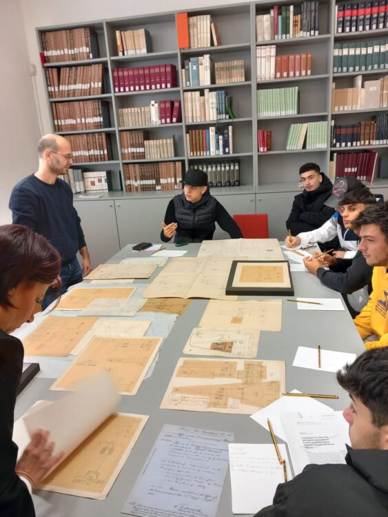 L’idea del progetto è nata lo scorso anno, quando alcuni professori dell’Istituto professionale per l’industria e artigianato (Ipsia) Marconi di Siena fecero richiesta per il percorso didattico “La Sapienza in pillole”, una visita che accompagna gli studenti alla scoperta della Biblioteca, del suo patrimonio, degli spazi e dei servizi offerti. In quell’occasione ci si chiese quale materiale del ricchissimo patrimonio grafico conservato al Gabinetto Disegni e Stampe avrebbe potuto catturare l’attenzione dei ragazzi. L’obiettivo era trovare qualcosa da affiancare a un manoscritto, a un incunabolo, a un giornale d’epoca per accendere la curiosità degli alunni e trovare un punto d’incontro con lo specifico percorso di studi del “Marconi”. La scelta cadde sui disegni di Giovanni Caselli, eseguiti in preparazione delle sue invenzioni: tavole tecniche, studi a mano libera, disegni di progettazione degli elementi delle macchine. Nacque proprio in questo frangente l’idea di un progetto strutturato, nel quale le tavole di Caselli rappresentassero spunti per approfondire argomenti dell’ordinario piano di studio in una modalità diversa e sperimentale. Fondamentali per l’avvio e la conduzione del progetto sono stati la forte motivazione e la dedizione dei professori delle due classi, che hanno investito molto del loro tempo nella visione preliminare del materiale, nella selezione dei disegni e nell’accompagnare i ragazzi nella comprensione dei progetti dello scienziato. A partire dal mese di ottobre 2023 sono iniziati gli incontri al Gabinetto Disegni e Stampe: studenti, insegnanti e responsabili delle collezioni si sono confrontati sui disegni di Caselli, individuando come obiettivo finale del progetto la realizzazione di due tutorial, uno per invenzione, in cui gli studenti stessi spiegheranno il funzionamento e la portata delle scoperte. Il materiale prodotto servirà alla Biblioteca nei propri percorsi didattici, per illustrare a studenti delle scuole e a un pubblico non specialistico le invenzioni di Giovanni Caselli.