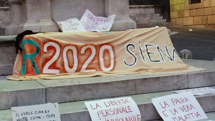 Ai numerosi attivisti intervenuti si sono uniti anche diversi militanti di Vox Italia che riconoscono e condividono Le istanze di R2020 Siena. I manifestanti in particolare hanno espresso il dissenso verso i dpcm considerati illegittimi e assolutamente controproducenti. Il nostro movimento crede che le norme attualmente in vigore per “contrastare” il virus in verità abbiano il solo significato di confondere il popolo, restringere le libertà personali e collettive e finanziare i grandi poteri economico speculativi. Di fronte alla recente crisi di governo, che ha portato Mario Draghi come futuro Presidente del Consiglio, R2020 Siena non può che esprimere l’assoluta indignazione ed un richiamo forte ed indiscutibile alla salvaguardia della Costituzione italiana. I militanti hanno letto in piazza gli articoli della carta costituzionale ricordando il diritto al lavoro, il diritto alla partecipazione alla vita politica, Il diritto e la libertà di espressione, il diritto ad un’informazione pluralista e libera. Molti sono stati i passanti incuriositi che hanno chiesto informazioni o si sono fermati ad interloquire, molti hanno solidarizzato con le posizioni del movimento.