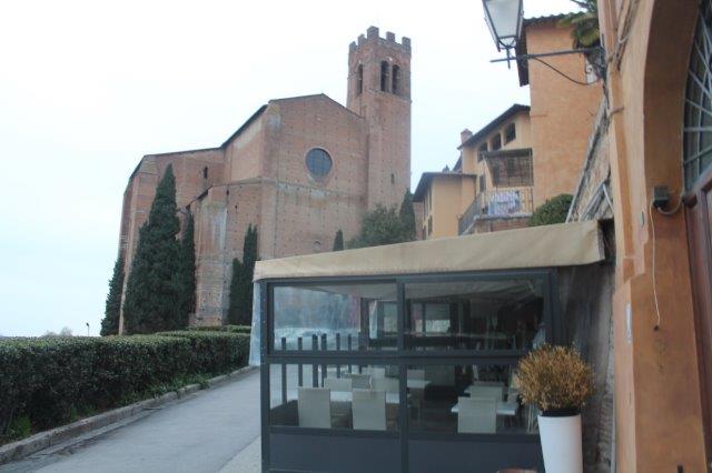 Con il Duomo e il centro storico davanti e la Basilica di San Domenico alle spalle, in via Camporegio, ci sono ben tre locali attaccati l’un l’altro, che pagano sicuramente un caro uso del suolo pubblico al Comune di Siena, ma l’effetto visivo che si ha, sia di giorno che di notte. su questo meraviglioso angolo di città, stona ed è tanto impattante.