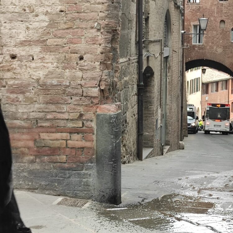 SIENA. Oggi verso le ore 12:10 si è verificato un nuovo incidente all’angolo della discesa tra via Fontebranda e via di Città, dove il pollicino ha urtato un lato della porta smerigliando e danneggiando ulteriormente il pilastro come già accaduto altre volte; nell’urto il pollicino ha perso anche dei liquidi pericolosi.