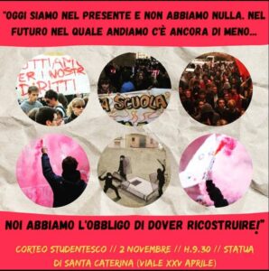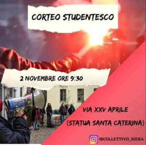 In prima linea la questione della pandemia che ha ridotto ultreriormente le prospettive degli studenti senesi e italiani, e che a volte è descritta come un alibi dagli studenti, un alibi dietro il quale molte scuole si nascondono per giustificare le loro carenze, ma anche problematiche quali l’insufficienza delle strutture scolastiche in tutta la città, il trasferimento del LES , Liceo Economico Sociale, le questioni della sede della Rinaldo Franci e molto altro. Una manifestazione organizzata dal Nuovo Collettivo Studentesco Apartitico di Siena, il cui rappresentante Valerio Massimo Vettori ci espone varie problematiche a partire dai trasporti, dalle sedi del Liceo Piccolomini.