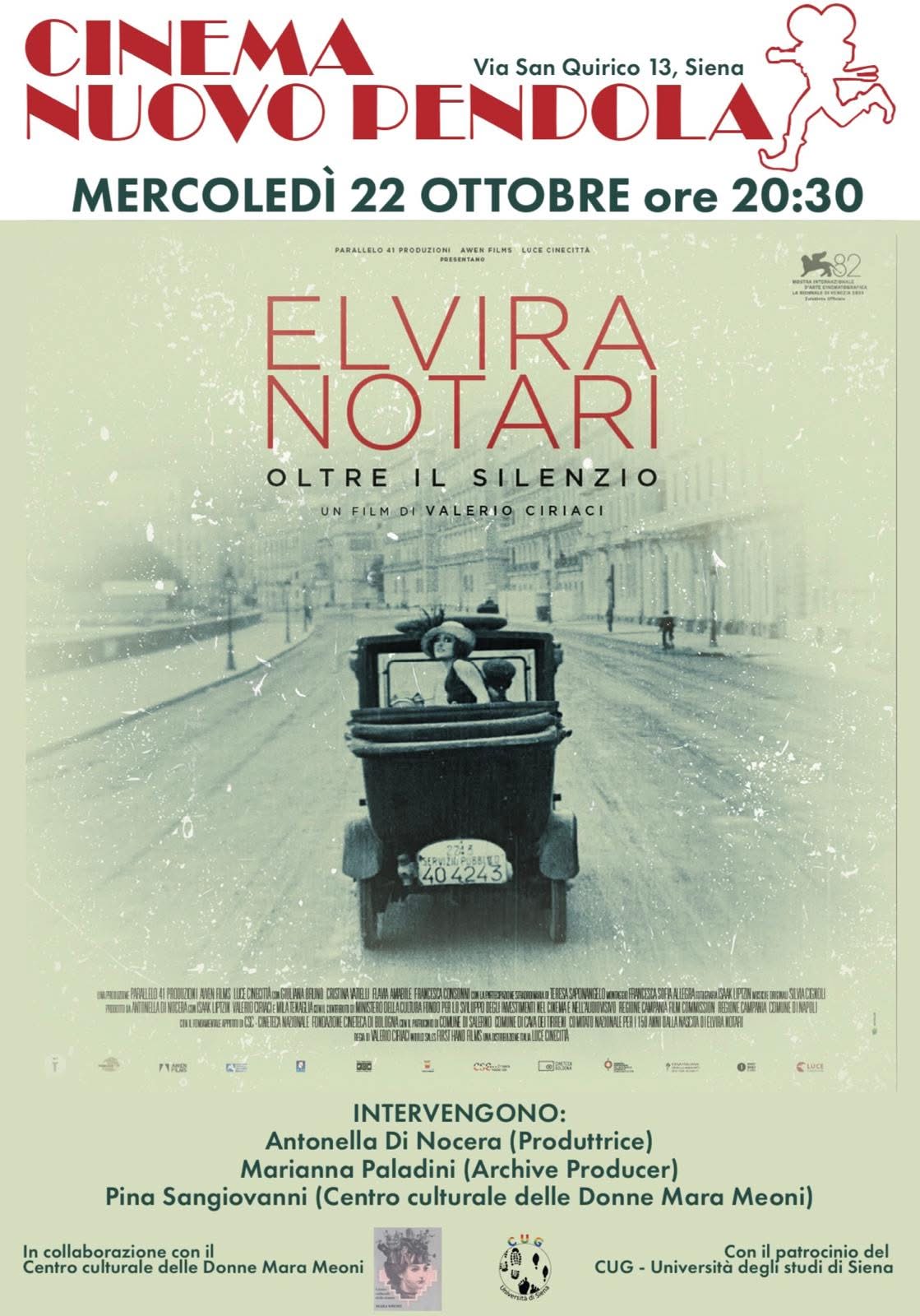 SIENA. ll Centro culturale delle Donne Mara Meoni ha promosso la proiezione di “Elvira Notari. Oltre il Silenzio”, un film presentato quest’estate all’ 82a Mostra Internazionale d’Arte Cinematografica di Venezia, sezione Venezia Classici – Documentari sul cinema, e non ancora visto a Siena.