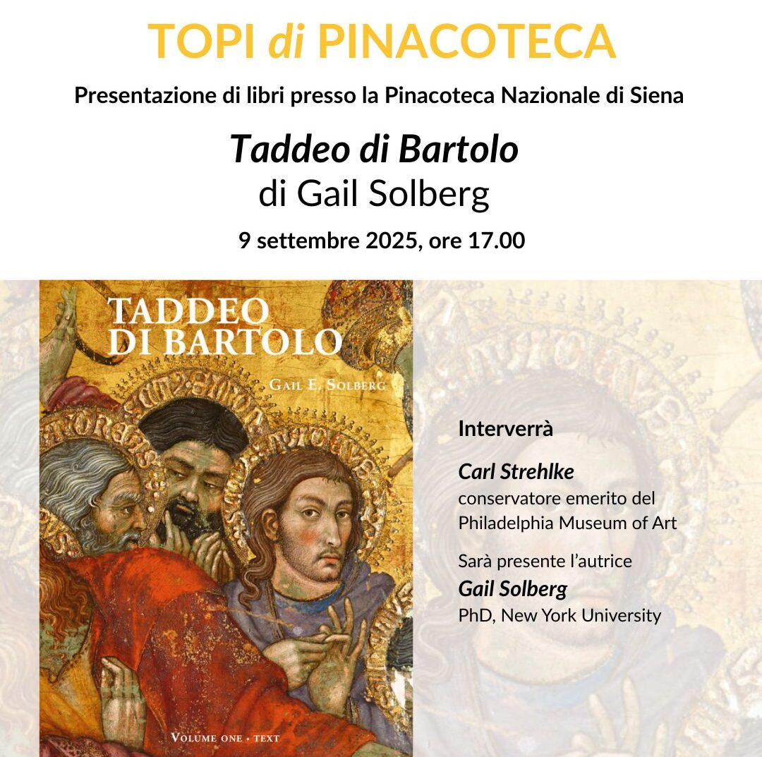 Martedì 9 settembre 2025 alle ore 17:00, presso la sala del Cenacolo, all’interno della Pinacoteca Nazionale di Siena, si terrà la presentazione del libro “Taddeo di Bartolo” di Gail Solberg.