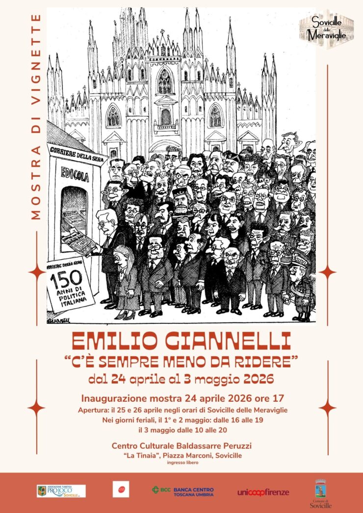 SOVICILLE. Venerdì 24 aprile, alle ore 17, al Centro culturale La Tinaia di Sovicille, sarà inaugurata la mostra “C’è sempre meno da ridere”, che ripercorre la storia della politica italiana, vista attraverso le vignette del grande maestro Emilio Giannelli, famoso vignettista di prima pagina del Corriere della Sera.