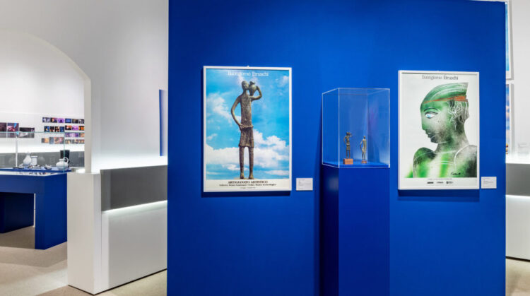 Il percorso espositivo ha intrecciato reperti archeologici provenienti dalle collezioni di San Gimignano, dal Museo Etrusco Guarnacci di Volterra e dal Museo Etrusco di Villa Giulia a Roma con documenti d’archivio, apparati grafici, pubblicazioni, opere d’arte e casi di studio. Ampio spazio è stato dedicato alla persistenza dell’immaginario etrusco nel tempo e al suo dialogo con l’arte contemporanea: dalle opere di Michelangelo Pistoletto, Arnaldo Pomodoro e Fausto Melotti alle Polaroid d’autore, fino ai video inediti della performance di Mario Schifano. Un racconto che si è esteso anche alla moda, al design, alla musica e alla comunicazione visiva, dalle porcellane Richard-Ginori agli abiti di Cinzia Ruggeri, dai gioielli delle maison orafe ai visual dei Matia Bazar, fino alla sezione dedicata al rapporto tra Gabriele d’Annunzio e la civiltà etrusca.