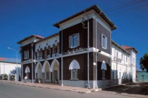 Su tutti spicca la ex sede della Banca d’Italia, il primo edificio costruito in Piazza Roma fra il 1895 e il 1905, sulla ex via Corso del Re oggi Nakfa Avenue. La costruzione riflette chiaramente lo stile islamico che ha ispirato gli italiani dopo di loro arrivo a Massaua. Si tratta di un bel palazzo dalla facciata simmetrica che fino alla fine degli anni Trenta è stata la sede della Banca d’Italia, in seguito fu una stazione di polizia sotto il regime del Derg etiopico prima di diventare la sede della Banca dell’Eritrea dopo l’indipendenza. La facciata del palazzo si compone di un corpo centrale formato da un colonnato gotico a tre archi che al piano superiore si trasformano in tre grandi bifore. Le proporzioni vengono mantenute nei due corpi laterali che sono simmetrici nei quali si trovano due ingressi sormontati da un finto arco gotico sporgente al piano terreno e da una finestra al primo piano.