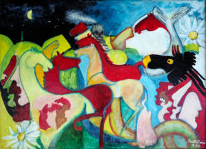 Con il titolo “Mutazioni” Rosalba Parrini sintetizza efficacemente i suoi percorsi pittorici caratterizzati dalla continua sperimentazione di tecniche e variazione di soggetti sempre legati alla sua fervida creatività.