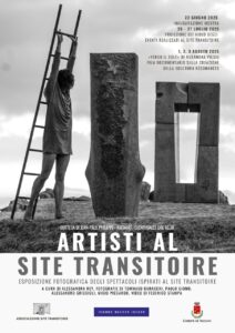 L’esposizione curata da Alessandra Rey presenta fotografie di Tommaso Buracchi, Alessandro Griccioli, Micio Piccardo e ripercorre per immagini alcuni momenti memorabili degli eventi unici creati da artisti di discipline diverse ispirati al Site Transitoire. Un lavoro interdisciplinare di altissimo livello, come ha ricordato Antonio Prete, che ha visto interagire grandi maestri del teatro di ricerca italiano e internazionale che invitati da Alessandra Rey si sono confrontati con la scultura Site Transitoire per fare propri alcuni aspetti da rielaborare nel proprio linguaggio poetico. Ognuno di questi eventi ha richiesto almeno un anno di preparazione e sono stati tutti prodotti dall’associazione Site Transitoire. La grande qualità e unicità del progetto artistico ha richiamato direzioni artistiche teatrali internazionali al Site Transitoire e molti di questi spettacoli sono stati invitati nei principali festival così come i video che li hanno registrati sono stati proiettati in festival europei di grande rilevanza quali il Festival di Avignon in. La mostra presenta anche alcune pagine di rassegna stampa nazionale scritte dalle più importanti firme della critica culturale italiana che hanno dedicato ampio spazio alle creazioni teatrali ispirate al SiteTtransitoire.