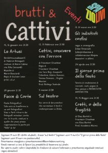 “Brutti e cattivi” – spiega Francesco Chiantese, volontario che si è occupato della direzione artistica della stagione – “è un gioco: così potrebbero definirsi facilmente i personaggi degli spettacoli in cartellone; anzi, qualche benpensante potrebbe spingersi talvolta anche a definire così gli artisti coinvolti, abituati a lavorare in ambiti marginali della società. Noi daremo parola a questi personaggi perché possano mostrarci, con il loro sguardo sghembo sul mondo, altre prospettive di umanità. Perché, in teatro, di umanità si tratta.”