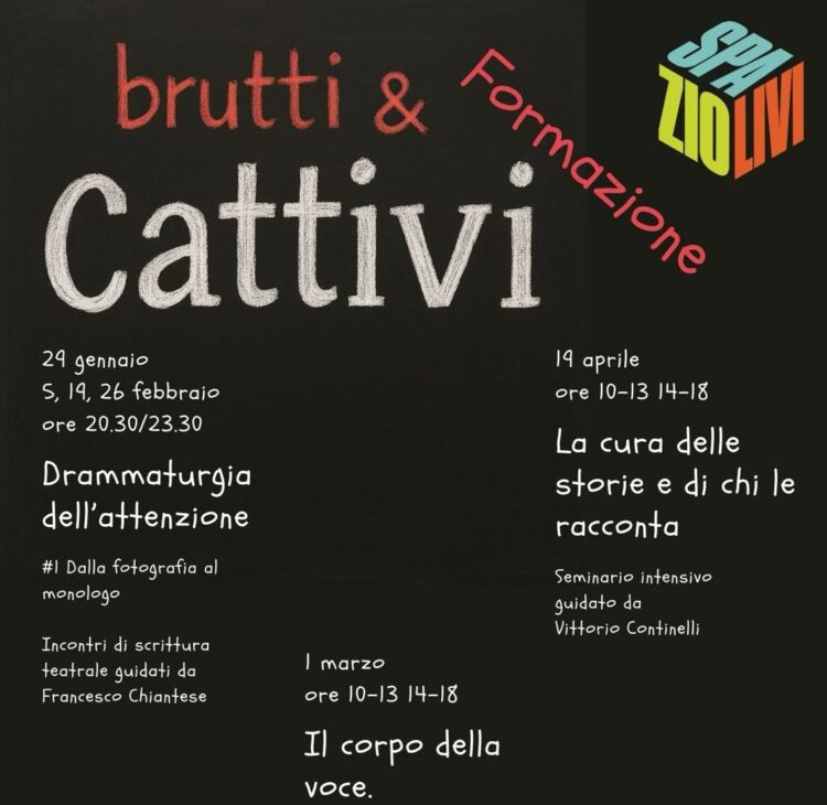“Brutti e cattivi” – spiega Francesco Chiantese, volontario che si è occupato della direzione artistica della stagione – “è un gioco: così potrebbero definirsi facilmente i personaggi degli spettacoli in cartellone; anzi, qualche benpensante potrebbe spingersi talvolta anche a definire così gli artisti coinvolti, abituati a lavorare in ambiti marginali della società. Noi daremo parola a questi personaggi perché possano mostrarci, con il loro sguardo sghembo sul mondo, altre prospettive di umanità. Perché, in teatro, di umanità si tratta.”