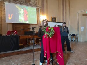 Gli studenti del Liceo Piccolomini hanno organizzato nell’Aula Magna una serie di performances recitative, ispirandosi a passi scelti dalle opere del Sommo Poeta, in particolare dalla Vita Nova e dalla Divina Commedia.A organizzare l’evento è stata la teferente del progetto, Giovanna Marsiglia, che ha coinvolto gli alunni del triennio e, quest’anno, anche alcuni colleghi appassionati studiosi di Dante, quali i professori Fermi, Petraglia, Giosa, Vavalle, Fusai.