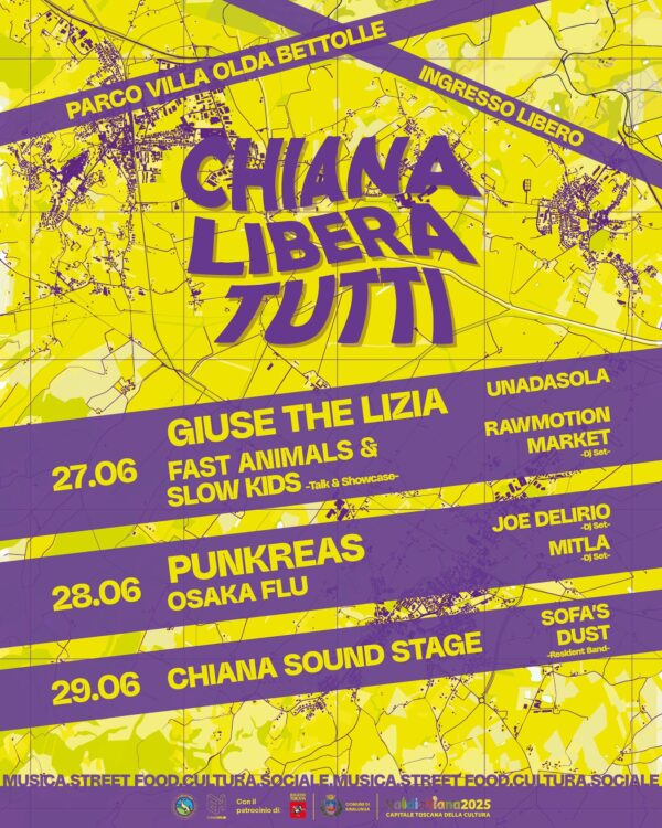 Nato e cresciuto grazie alla partecipazione di volontari, realtà locali e sostenitori, tra cui Banca Tema main partner dell’evento, Chianaliberatutti si conferma un progetto culturale che mette al centro creatività, accessibilità, territorio e comunità, in un clima di festa, ascolto e condivisione. «Chiana Libera Tutti è un inno collettivo alla creatività» – raccontano gli organizzatori – «Un luogo aperto dove si incontrano esperienze, visioni e persone. Per tre giorni, la Valdichiana si trasforma in una casa per chi ha qualcosa da dire, da suonare, da vivere insieme».