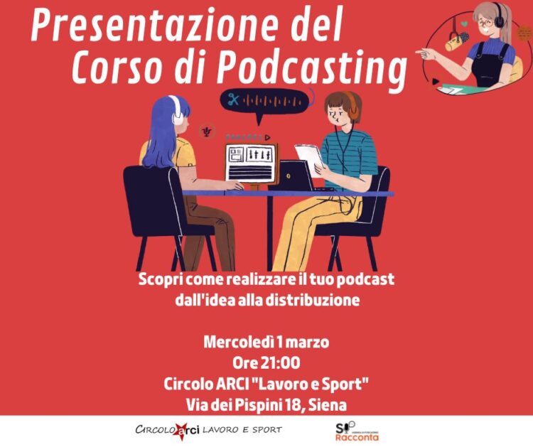 Alle ore 21 si terrà la presentazione del corso Podcasting presso il Circolo Arci Lavoro e Sport in via Pispini N°18