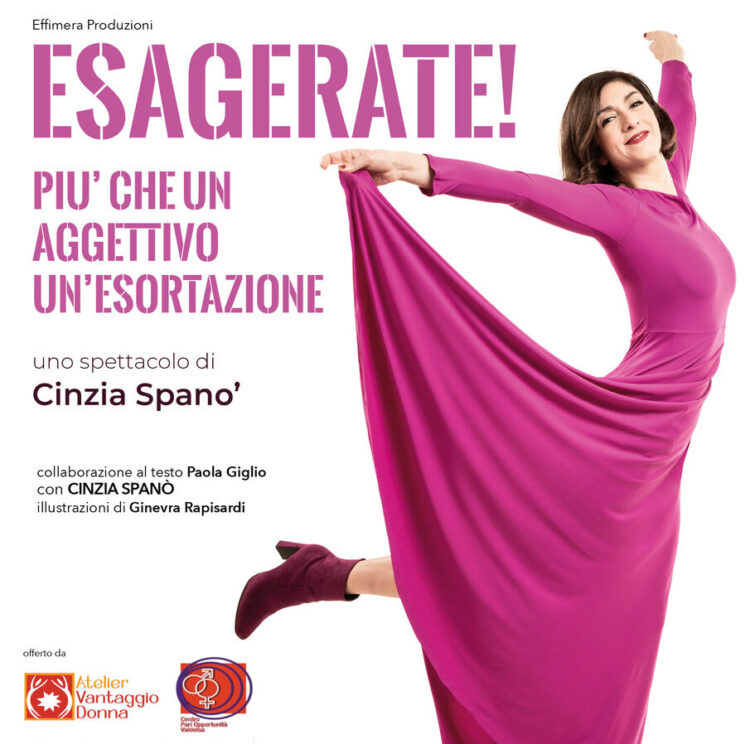 Domani, martedì 18 novembre alle 21, andrà in scena al teatro Politeama di Poggibonsi il one women show ironico “Esagerate! Più che un aggettivo un’esortazione”, spettacolo teatrale di e con Cinzia Spanò, collaborazione al testo Paola Giglio, illustrazioni di Ginevra Rapisardi.