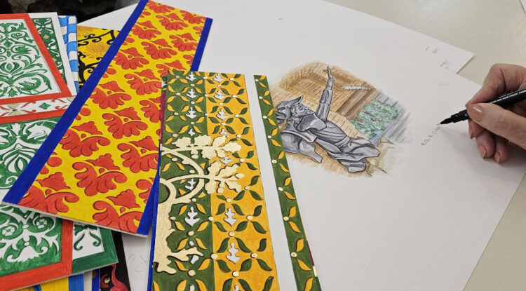Un lavoro complesso che è partito nei musei delle Contrade dove le autrici del progetto hanno ricercato i broccati più belli e preziosi per raccontarne i colori; uno studio minuzioso sui particolari che ha portato alla realizzazione di pregiatissime giclée a tiratura limitata, tutte ritoccate a mano dall’artista, dedicate a Siena e per i senesi.