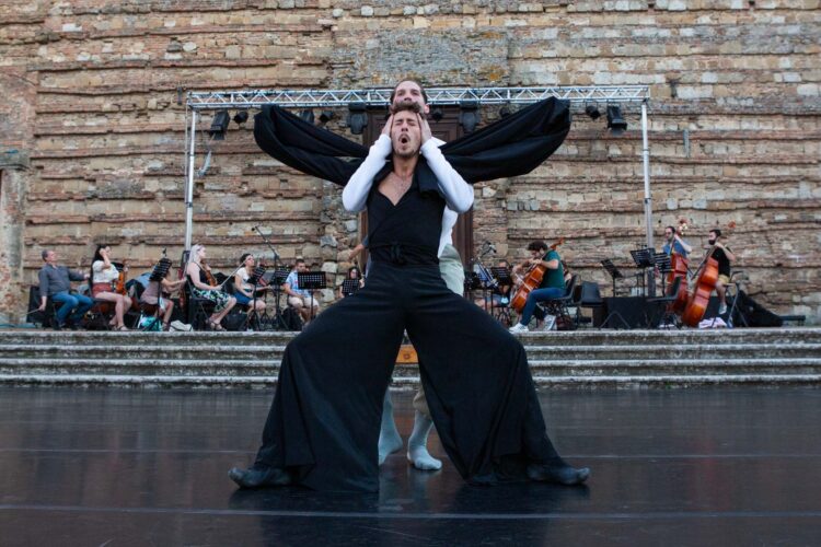 Sarà poi il palcoscenico di Piazza Grande a ospitare il trittico di danza pensato appositamente per Montepulciano e intitolato Tra cielo e terra (ore 21.30), con il coordinamento di Azzurra Di Meco; le musiche dal vivo sono eseguite dall’Orchestra Sinfonica Florentia. In avvio Le Danse sacrée et danse profane di Claude Debussy sono segnate dal tratto di Riccardo Buscarini: già vincitore di numerosi riconoscimenti internazionali, l’étoile presenta un assolo tra ombre e fasci luminosi che invita a riflettere sul significato della condivisione e dei rapporti umani; la direzione musicale è qui affidata a Silvia Magagni, con Elisa Frandi all’arpa. Sarà poi Roland Böer sul podio per l’Adagietto della Quinta Sinfonia di Gustav Mahler su cui si muove la creazione a quattro mani di Sasha Riva & Simone Repele, interpreti in scena, già danzatori al Grand Théâtre de Genève: la coreografia prende forma proprio dalla partitura del compositore austriaco, resa celebre da Luchino Visconti che la utilizzò come colonna sonora per il suo capolavoro Morte a Venezia. La conclusione è invece assegnata a Cristina Peruzzi che guida i suoi giovani allievi locali sulla partitura de La Creation du Monde di Darius Milhaud, un racconto mitologico pagano, la cui parte musicale è guidata dalla bacchetta di Valentino Zangara.