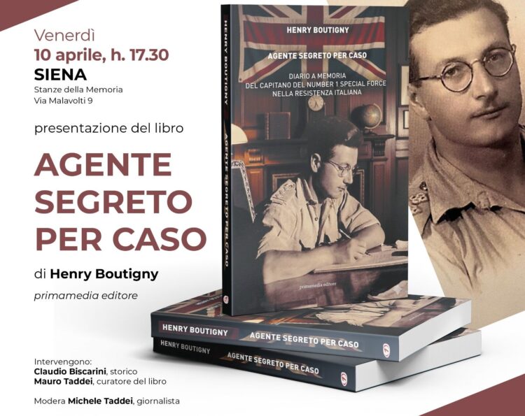 SIENA. Non sarebbe mai dovuto diventare un agente segreto. Poi, il caso porta Henry Boutigny ad arruolarsi nell’esercito inglese, quindi nel SOE (Special Operations Executive), il reparto voluto da Winston Churchill per “incendiare l’Europa”. Primamedia Editore annuncia l’uscita del libro “Henry Boutigny – Agente segreto per caso”, il diario inedito del capitano Henry Boutigny, ufficiale della Number 1 Special Force del SOE (Special Operations Executive) che operò in supporto alla Resistenza italiana durante la Seconda guerra mondiale. Il volume sarà presentato in anteprima venerdì 10 aprile a Siena (ore 17.30 Stanze della Memoria via Malavolti, 9).