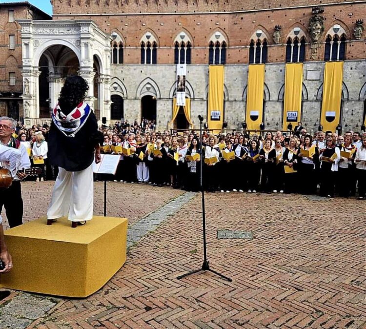 SIENA. Esiste un coro con quasi 500 cantanti, di tutte le contrade e dei cori senesi: Siena Canta. Alla vigilia degli attesi Siena Awards il 27 settembre, quando, alle 15.30, di nuovo invaderanno Piazza del Campo con i canti tradizionali senesi, saranno anche la colonna sonora delle proiezioni di Ars Lucis, videomapping inedito per questa 11 edizione. Fervono adesso le prove nelle varie sedi di contrada che fanno a gara ad ospitare i cantori. Una formazione nata un anno fa quando Luca Venturi ha chiesto a Valentina Guarnieri, che dirige e coordina, di mettere insieme un ”piccolo coro” per dare voce ai canti tradizionali senesi.