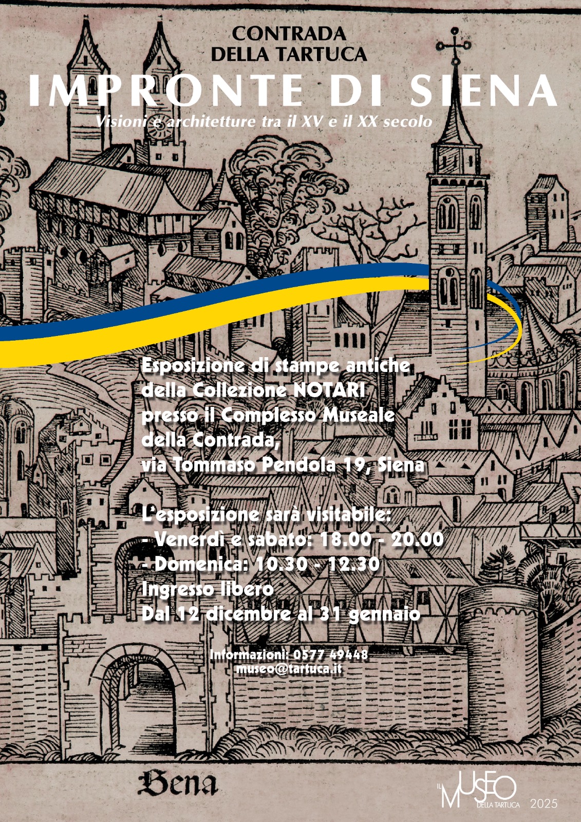 SIENA. La Contrada della Tartuca presenta “Impronte di Siena – visioni e architetture tra il XV e il XX secolo”, un’esposizione unica nel suo genere dedicata alla straordinaria collezione di stampe antiche del maggiorente tartuchino Alessandro Notari, una delle raccolte più ricche e ordinate sull’evoluzione iconografica della città.