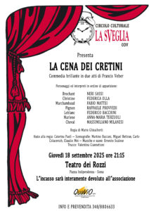 SIENA. Giovedì 18 settembre alle ore 21.15 il Teatro dei Rozzi ospiterà “La cena dei cretini”, celebre commedia francese portata in scena dal Circolo Culturale La Sveglia ODV con la regia di Mario Ghisalberti.