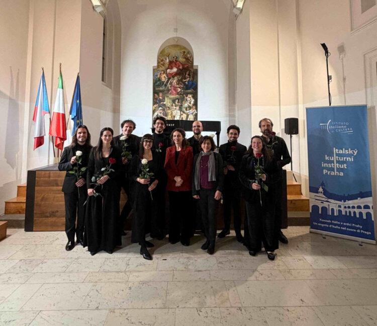 L’evento, che ha registrato il tutto esaurito, si è svolto in collaborazione con l’Accademia Chigiana e ha offerto al pubblico praghese un raffinato itinerario attraverso le diverse espressioni della vocalità italiana, dal madrigale rinascimentale alla musica contemporanea. Sotto la guida del Maestro Lorenzo Donati, l’Ottetto Vocale ha proposto un programma di ampio respiro storico e stilistico, comprendente musiche di Luzzasco Luzzaschi, Luca Marenzio, Claudio Monteverdi, Adriano Banchieri, Giovanni Pierluigi da Palestrina, Giacomo Carissimi, Alessandro Scarlatti, Gioachino Rossini, Pietro Clausetti, Bruno Bettinelli, Goffredo Petrassi, Luciano Berio, accanto a una composizione dello stesso Donati.