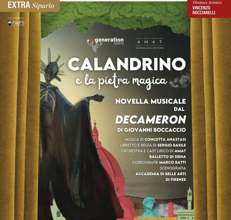SIENA. La messa in musica di una novella del Boccaccio apre il cartellone “Extra sipario” dei Teatri di Siena: “Calandrino e la pietra magica”, spettacolo inedito realizzato da Amat e voluto dal direttore artistico Vincenzo Bocciarelli per celebrare il 650esimo anniversario della morte di Giovanni Boccaccio, andrà in scena in prima assoluta martedì 14 ottobre alle ore 21 sul palco del Teatro dei Rozzi di Siena. L’evento fa parte del cartellone “Regeneration Opera”, progetto che vede in collaborazione Amat, Comune di Siena, Teatri di Siena e Fondazione dell’Antico Ospedale di Santa Maria della Scala con l’obiettivo di avvicinare il pubblico al teatro musicale e all’opera lirica.
