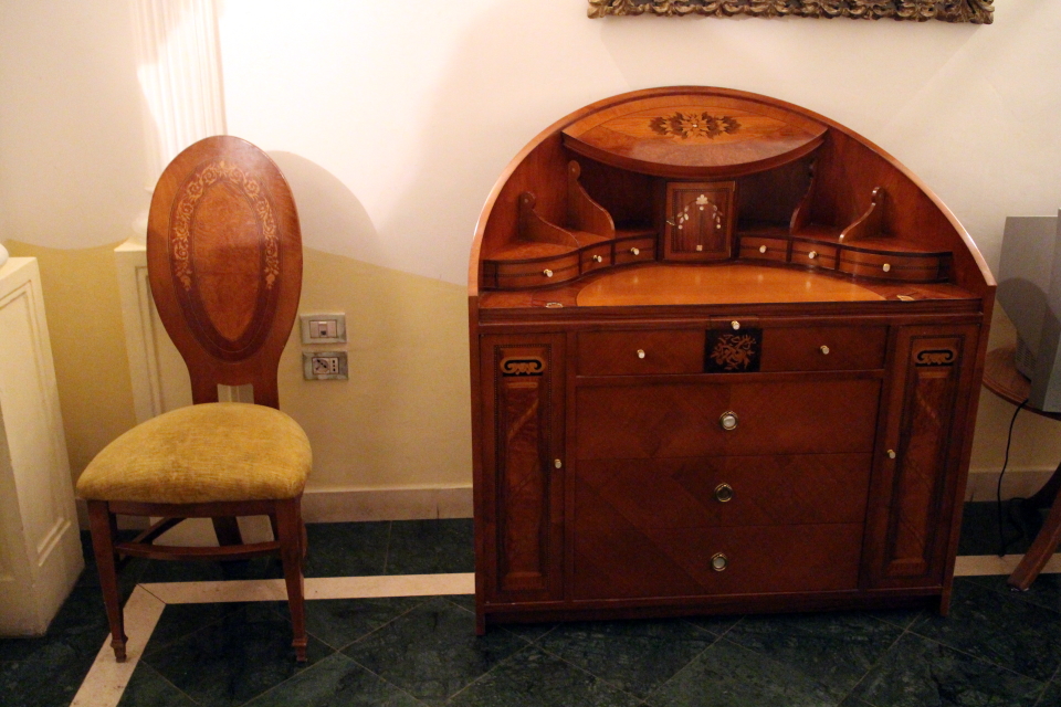 Tutti gli ambienti dell’albergo sono arredati con mobili in legno scuro lucido risalenti all’inizio del secolo scorso e l’atmosfera che ne scaturisce è accogliente e lussuosa. L’Albergo Italia ha una suite imperiale più tre suites distinte da un colore dominante da cui prendono il nome (rossa, verde e gialla) e da otto splendide stanze con soppalco e sei stanze doppie su di un unico piano, tutte dotate di comfort moderni. A ciò si aggiungono un bar finemente arredato e due ristoranti.