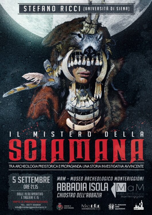 Giovedì 5 settembre, ore 21:15, chiostro di Abbadia Isola, Stefano Ricci in “IL MISTERO DELLA SCIAMANA. Tra archeologia preistorica e propaganda: una storia investigativa avvincente”.