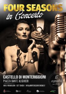 Si inizia giovedì 17 agosto, al Castello, Piazza Dante Alighieri, ore 21,15, con “Four Seasons in concerto”, un quintetto di musica Swing & Soul di Perugia, composto da Daniela Tenerini (voce), Roberto Cesaretti (basso), David Versiglioni (al piano), Silvano Pero (batteria) e Paolo Bartoni (tromba). Si ispirano al periodo della Dolce vita e alle atmosfere eleganti del passato, reinterpretando però con un tocco di contemporaneità quello stile senza tempo. Propongono un ideale ponte tra gli anni ’50 ed i giorni nostri, dove passato e presente si fondono per raccontare le mille sfumature di un viaggio tra i grandi classici della tradizione della SwingEra.