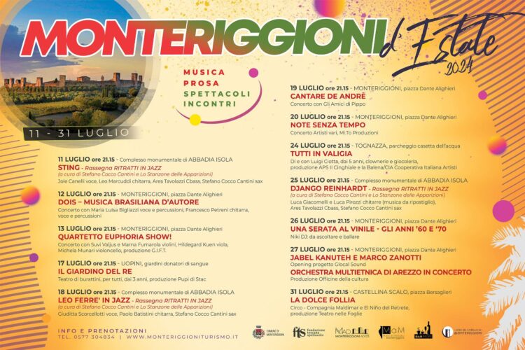 Al Castello di Monteriggioni, Piazza Dante Alighieri, il venerdì e il sabato si concentreranno invece eventi musicali e di prosa.