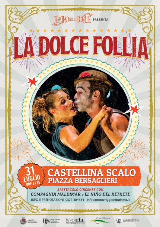 Mercoledì 31 luglio, ore 21:15, a Castellina Scalo in Piazza Bersaglieri con lo spettacolo per famiglie “La dolce Follia”