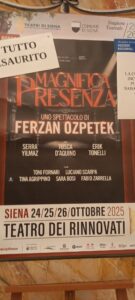 Gli ingredienti di questa rappresentazione li abbiamo già visti in altre opere come “Questi nostri fantasmi” di Edoardo De Filippo, nei vari film del regista stesso: omosessualità e tradimento ne “Le fate ignoranti”; ricerca della propria identità in “Mine vaganti”; la vecchia casa ed un segreto in “La finestra di fronte”. Quindi non ci sorprendono, perché Ozpetek ormai ci ha abituati alla sua indagine sul mondo dell’interiorità, della trasgressione, che si riflette come una deflagrazione nelle famiglie dette “normali”, si pensi ai fratelli de “Le mine vaganti”. Forse tutte le volte che esce un’opera nuova del regista ci aspetteremmo qualche cosa in più. Allora, se siamo in presenza di temi già trattati e collaudati, cosa ci fa dire riguardo alla rappresentazione di ieri sera “è stato uno spettacolo bello?” (gli applausi scroscianti del pubblico lo confermano). Per noi è la facoltà di farci riflettere sul nostro mondo interiore, di affrontare temi scottanti che spesso producono drammi nelle famiglie, di impegnarsi al massimo per realizzare i nostri sogni, ma anche di fare i conti con il soprannaturale. Il tutto trattato con mano leggera e raffinata, ironica e divertente.