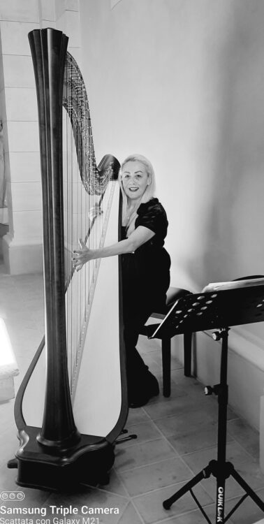 Antonella Natangelo è nata a Firenze e abita a San Gimignano. Diplomata in canto al Conservatorio di Musica Cherubini di Firenze, si è specializzata nel canto barocco con il Maestro Piero Grazzini, mentre il suo percorso arpistico è stato seguito dall’arpista Cinza Conte, prima arpa dell’ORT (Orchestra Regionale Toscana). Ricercatrice e studiosa, dedica tutto il suo tempo allo studio, all’attività artistica e all’insegnamento e oggi è docente di arpa alla scuola di musica Polis di Certaldo e alla scuola steineriana di Colle di Val d’Elsa. Voce di soprano colore celtico, con la sua arpa e il canto crea un’atmosfera foriera di suggestive emozioni e si esibisce come solista in concerti ed eventi culturali con il suo ampio repertorio per arpa e voce. Nella sua carriera vanta prestigiose collaborazioni in Italia e all’estero e riconoscimenti, fra cui il Fiorino d’Argento vinto nel 2016 con la poetessa Caterina Trombetti al prestigioso premio letterario Città di Firenze XXXIV edizione con il libro e cd audio “Consonanze la Poesia incontra l’Arpa”. Nel 2024 la Fondazione il Fiore le ha commissionato di musicare 13 poesie per arpa e voce del poeta Alberto Caramella da cui è stata realizzata la pubblicazione “La poesia in… canto. Un barbaglio di luce dai capelli”.
