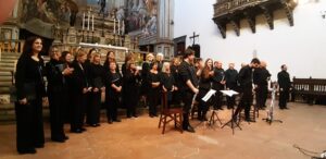Infine il Coro Rodolfo Del Corona di Livorno con il programma “Cantate Domino” ha presentato un repertorio sacro dalle origini del gregoriano fino a compositori viventi. Ogni brano è stato preceduto da una spiegazione dello stesso M°. Stornello. Il Coro si è esibito anche spostandosi in varie zone della Chiesa per rendere il suono diverso a seconda dei brani cantati, creando così un’immersione totale nel suono e un vero e proprio effetto di spazializzazione.