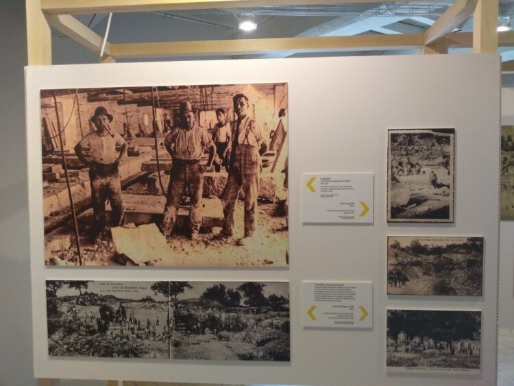 La mostra audiovisiva “Fervet opvs” (il lavoro ferve) racconta il rapporto fra Rapolano Terme e il travertino attraverso foto, video, interviste e oggetti. L’esposizione è articolata in tre sezioni. La prima racconta la vita dei lavoratori nelle cave dall’inizio del ‘900 fino agli ultimi decenni del secolo scorso, i loro mezzi di trasporto, le lotte sindacali e per la sicurezza sul lavoro, i banchetti delle maestranze e la mensa. La seconda sezione è dedicata ai sistemi di lavorazione della pietra dalla cava al cantiere, trasformati nel tempo da artigianale a industriale con ripercussioni sui posti di lavoro, mentre la terza ricorda la scuola di avviamento professionale per gli scalpellini, nata a Serre di Rapolano nel 1941, voluta dal Comune e dagli imprenditori delle cave per formare mano d’opera qualificata e rimasta attiva fino al 1970.