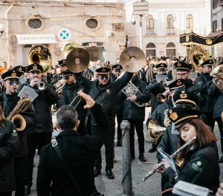 In Puglia le uscite delle bande scandiscono il calendario, segnano per la città il tempo della gioia e del dolore, raccolgono la gente ai lati delle strade o intorno alla cassa armonica nei giorni della festa, quando sui bordi della piazza si possono ascoltare ricordi fischiettati di arie d’opera accanto a racconti di gioventù narrati per le nuove generazioni, perché non sia la fine.