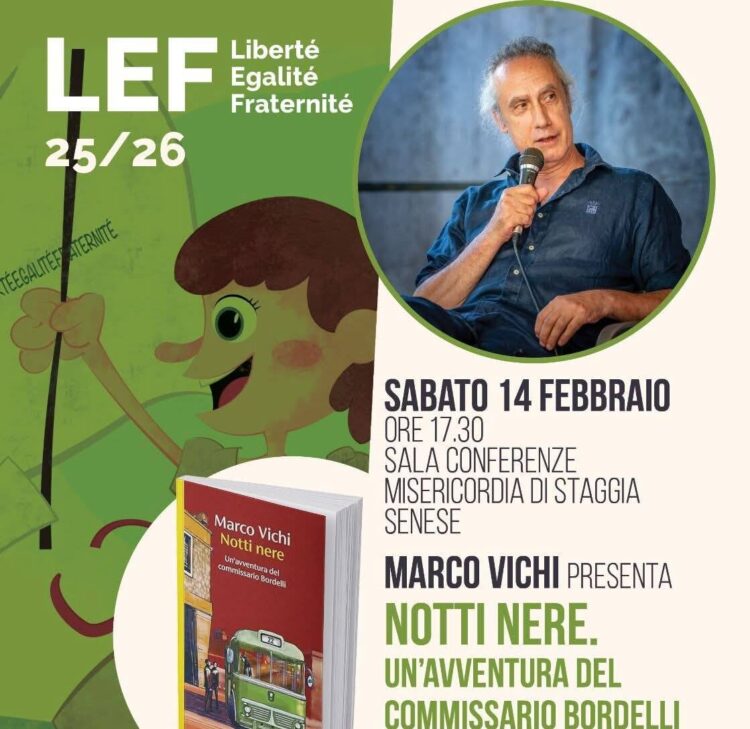 Nel pomeriggio, alle 17.30, nei locali della Misericordia di Staggia Senese, che collabora alla realizzazione dell’evento, Marco Vichi presenta invece il suo ultimo libro, “Notti nere – Una nuova avventura del Commissario Bordelli”, uscito nel 2025 per Guanda. Simone De Santi e Caterina Targi dialogano con l’autore fiorentino. L’evento è a ingresso libero fino a esaurimento dei posti.