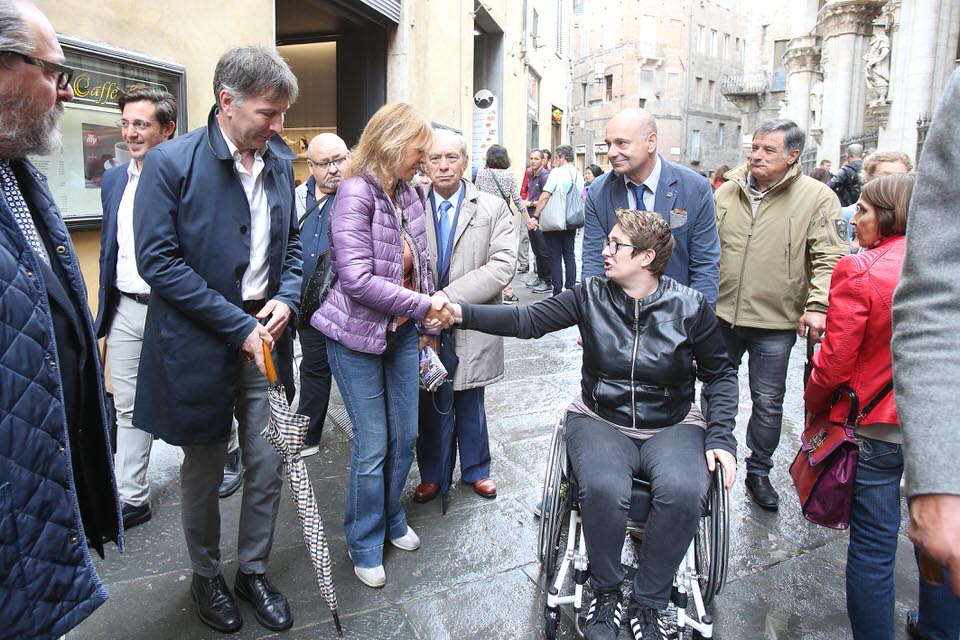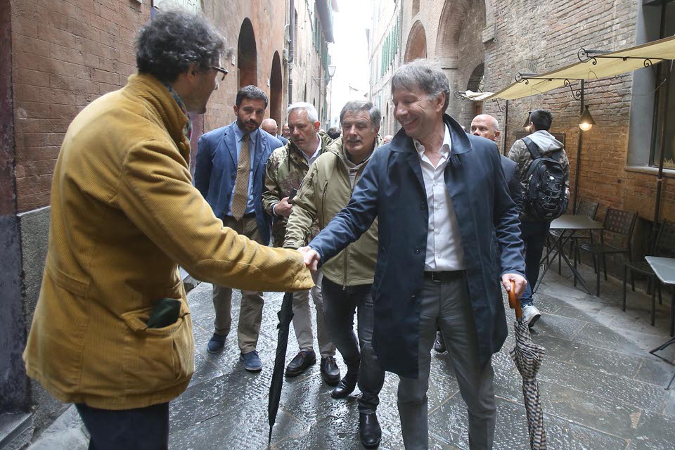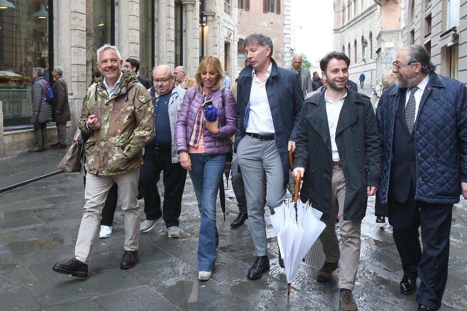 SIENA. “C’è il Pd che ha distrutto la città e c’è il cambiamento che siamo noi. Non ci possono essere altre alternative”. La battuta di Luigi De Mossi, candidato civico, con un largo appoggio del centrodestra senese, sta ad indicare la strategia della campagna elettorale dell’avvocato e di chi lo sostiene. Massimo sforzo per battere Valentini. Con la sua lista civica e l’intero centrodestra – che oggi si è presentato per sostenerlo con Alessandra Mussolini, che ha fatto grandi elogi all’avvocato – ha ancora parlato dell’esigenza di un mobilità non solo su gomma, di importanza della cultura e del turismo come motori di sviluppo della città e di passaggio citando lo slogan caro alla destra di “prima le case ai senesi”, che sembra piacere, ora che siamo in campagna elettorale, anche ad aree di una sinistra moderata. Mussolini ha sottolineato che è “importante avere tra i partiti del centrodestra un atteggiamento unitario. Si deve fare sempre dovunque . Qui ci siamo riusciti con un nostro candidato. Faccio i complimenti per la scelta fatta”. Considerazioni che hanno fatto ovviamente felice De Mossi.