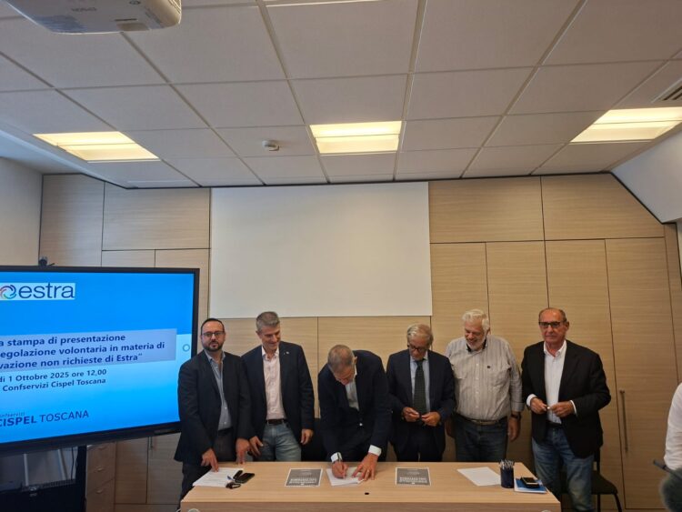 FIRENZE. Oggi, presso la sede di Confservizi Cispel Toscana, è stata firmata la versione aggiornata del “Protocollo di autoregolazione volontaria in materia di contratti e attivazione non richieste di Estra” tra la multiutility toscana e le principali associazioni dei consumatori regionali: Adoc Toscana, Adiconsum Toscana, Federconsumatori Toscana, Adusbef Toscana, Codacons Toscana, Movimento consumatori, Confconsumatori Toscana e Unione nazionale consumatori.
