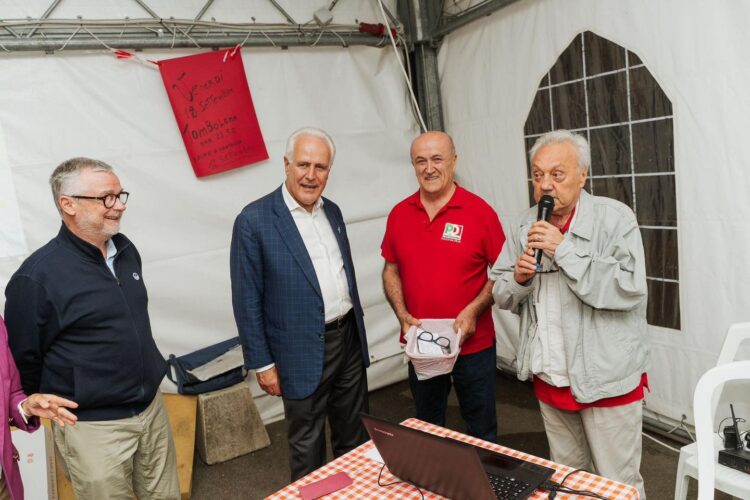 COLLE DI VAL D’ELSA. Con il saluto del Governatore della Toscana Eugenio Giani si è chiusa la festa dell’Unità, edizione 2025. Giani, con il segretario Enrico Galardi, il capogruppo Pd Riccardo Vannetti e l’assessore regionale al Diritto alla Salute Simone Bezzini, dopo essere arrivato con un po’ di ritardo a causa dei numerosi impegni della giornata, ha improvvisato il saluto alle cittadine e ai cittadini colligiani salendo su un muretto, scegliendo così di rinunciare alla comodità dello spazio dibattiti.