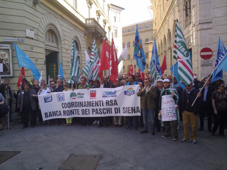 SIENA. Una manifestazione che resterà nella storia della città. Per partecipazione di dipendenti Mps e non solo.