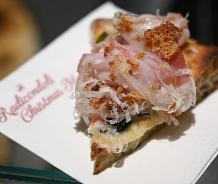 RADICONDOLI. Cacciucco di Cinta Senese Dop, pizza con la gota di Cinta Senese, il Panettone salato alla Finocchiona Toscana Igp, la Zuppa di Cece piccolo fiorentino e olio evo dop, il Lampredotto di calamaro.