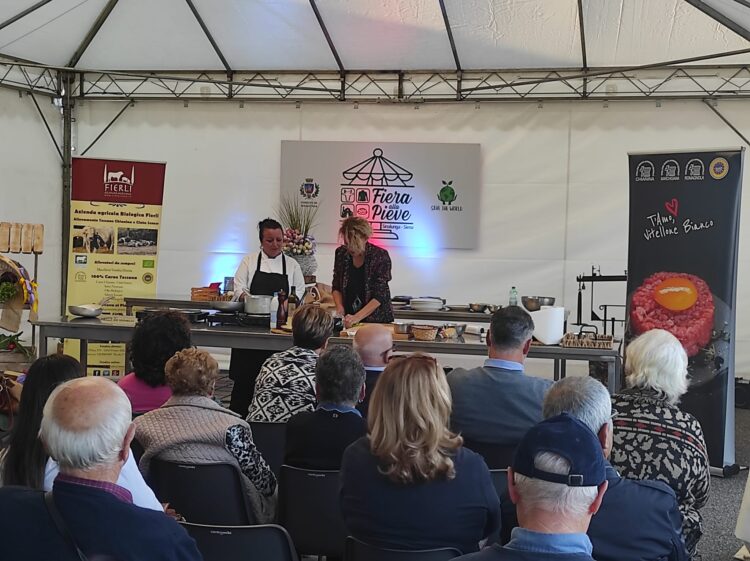 SINALUNGA. Appuntamenti in cucina in compagnia di chef e massaie per il Consorzio di tutela “Vitellone Bianco dell’Appennino Centrale IGP”, che rinnova la sua partecipazione alla Fiera della Pieve di Sinalunga in corso fino a domenica 9 ottobre. Nei giorni scorsi, l’attrice Eva Grimaldi è stata “chef per un giorno” con la preparazione di un piatto a base di Chianina Vitellone Bianco dell’Appennino Centrale IGP e prodotti del territorio insieme a Debora Kim Selibara, chef del ristorante “La Locanda della Bandita” di Bettolle. Venerdì 7 ottobre, alle ore 17, sarà la volta di un altro volto noto della tv, lo chef Andrea Mainardi in arrivo da “La prova del Cuoco” con Antonella Clerici, che presiederà una competizione amichevole fra istituti alberghieri del territorio dedicata a piatti a base di carne Chianina certificata Vitellone Bianco dell’Appennino Centrale IGP. Domenica 9 ottobre, alle ore 16, ci sarà spazio, invece, per riscoprire antichi piatti della tradizione in un connubio generazionale per la conservazione della memoria storica del territorio con un contest fra “massaie” sinalunghesi.