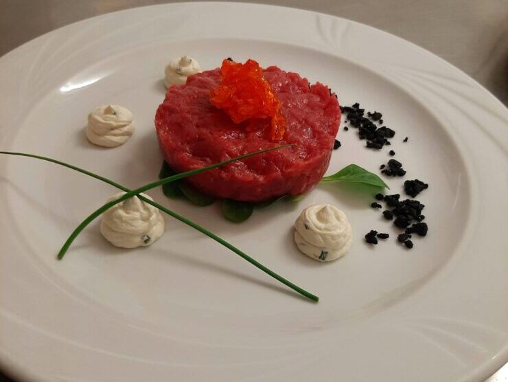 Il menù del 16 ottobre. Ed entriamo nel vivo. I piatti della Bottega dell’Abate saranno tutti accompagnati dai vini di Mazza Società Agricola, come detto, per cercare sapori, gusti ed esperienze nuove. Come antipasto, Terrina di Faraona, crema di porri e riduzione di Chianti Classico con Adino Igt Bianco Toscano. Come primo, Ravioli ripieni di consiglio, zucca gialla e pecorino di Fossa con Gaia Chianti Classico Docg. Come secondo, Filetto di maiale con mele e prugne accompagnati da Nemi Super Tuscan Igt. Infine, su la Dolce Strada, I Sentieri del Gusto, troviamo in questo appuntamento la Pasticceria Le Campane di Siena. E come dessert il menù propone Pera al vino, Crumble al Panforte di Siena Igp e cremoso ai Ricciarelli di Siena Igp insieme a Uveta Vin Santo Doc.