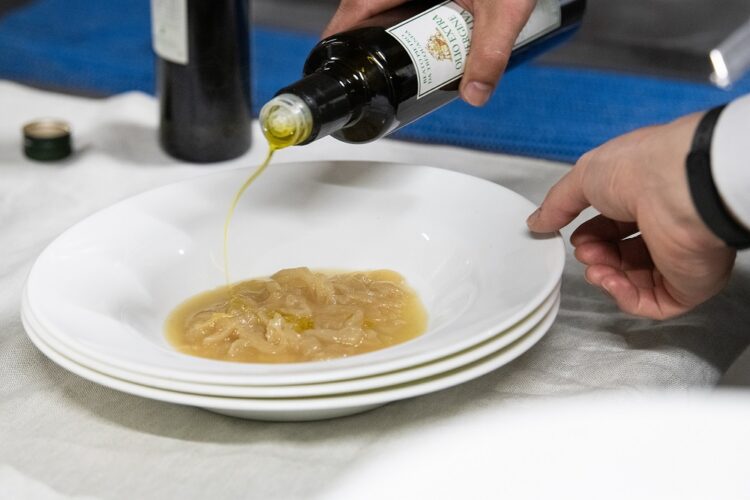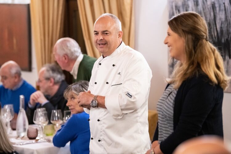 E’ sempre il menù il luogo dove storia, tradizioni, sapori, profumi si incontrano. Eccolo qua. Per antipasto Fegatelli nella rete con zolfini finocchi e fiori, Minestra di ceci e farro sfoglia di pane toscano accompagnati da Salterio rosso di Montepulciano 2020 Tenuta Tre Rose. E poi, come primo piano Stracci di pasta con ricotta del Mameli e Cinta Senese al pepe nero. Come secondo piatto, Petto di anitra con cipollotto castagne e miele di Sulla. Questi piatti saranno accompagnati dal Santa Caterina Nobile di Montepulciano 2019. Per finire, Cantucci e sottobosco con Vin Santo di Montepulciano 2014.