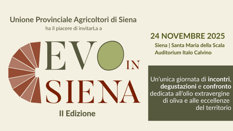 SIENA. Dopo il successo della prima edizione, torna EVO in SIENA, la giornata dedicata all’olio extravergine di oliva toscano di alta qualità, promossa dall’Unione Provinciale Agricoltori di Siena con il patrocinio del Comune di Siena.