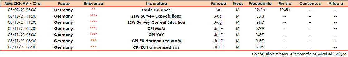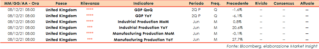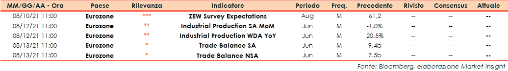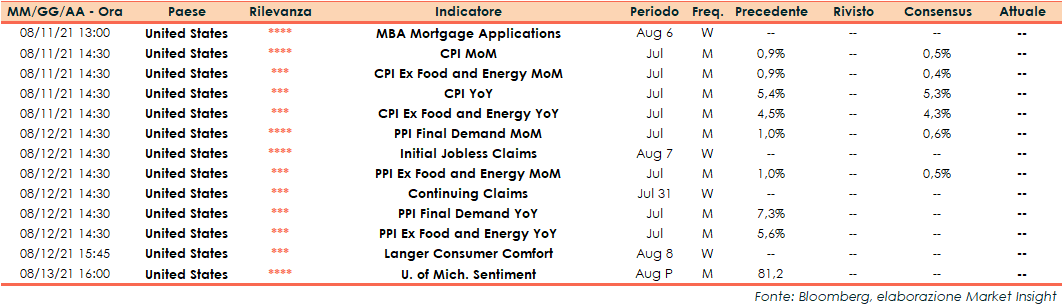 Appuntamenti macro della prossima settimana (dal 09 al 13 agosto)